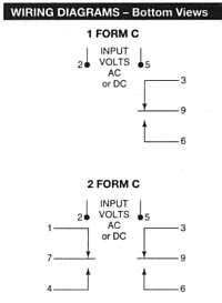 SDAS-O1 series 1.5 TO 15 AMP AC CURRENT SENSOR · Zero insertion loss · Inductive coupling to power line · Choice of modes - Adjustable overcurrent sensor - Adjustable undercurrent sensor · Solid state sensing circuit · 1 Form C (SPDT) or 2 Form C (DPDT) internal relay Overcurrent sensor - Detects a current in excess of the value determined by the potentiometer setting. A built-in time delay, 200 ms, minimum, allows for normal starting and surge currents. Actual time delay is dependent upon potentiometer setting and magnitude of overcurrent. Any overcurrent lasting longer than this causes the internal relay of the SDAS01 to energize. The relay will remain energized until sensor control voltage is removed, even if the overcurrent ceases to exist. Undercurrent sensor - Reacts to a complete loss of sense current, or any current of less than the potentiometer setting. Upon application of sensor control voltage, there is a nominal 350ms delay during which time power line current must begin. This delay gives line components time to turn on. If, at the end of the delay, sense current should decrease to less than the potentiometer setting of the SDAS-O1 and remain there for approximately 350 ms, the internal relay of the SDAS-O1 will energize. It will remain energized until either sense control current again exceeds the potentiometer setting, or until sensor control voltage is removed. Control Voltage: 24VAC 50/60 Hz./DC +/- 10%. Sense-Current Range: 1.5 to 15 amps AC. Internal Relay Contact Data: 1 Form C (SPDT) type (code X1): 5A @ 28VDC or 2.5A @ 120VAC, res. 2 Form C (DPDT) type (code Y2): 2A @ 28VDC or 1A @ 120VAC, res. Set Point Variation: +/- 25% over operating temperature range. Time Delay: Overcurrent sensor: 200 ms, min., after beginning of overcurrent. Actual delay is dependent upon potentiometer setting and magnitude of overcurrent (see Figure 1). Undercurrent sensor: 350 ms, typ.; 200 ms, min., from beginning of undercurrent after control voltage is applied. Power Requirement: 1.7W or 1.7VA @ 24VAC. Temperature Range: Storage: -40 C to +85 C. Operating: -25 C to +70 C. Enclosure: Plastic dust cover. Mounting: Bracket, socket or printed circuit board options. For sockets see KUP 3 pole sockets. Weight: 3.17 oz. (90 g) approximately. UNDERCURRENT SENSORS Part Number Contacts Mounting SDAS-O1-7Y2B1024 DPDT, 2A DC/1A AC Bracket SDAS-01-7Y2S1024 DPDT, 2A DC/1A AC Socket SDAS-01-7Y2P1024 DPDT, 2A DC/1A AC Printed Circuit SDAS-01-7X1B1024 SPDT, 5A DC/2.5A AC Bracket SDAS-01-7X1S1024 SPDT, 5A DC/2.5A AC Socket SDAS-01-7X1P1024 SPDT, 5A DC/2.5A AC Printed Circuit OVERCURRENT SENSORS Part Number Contacts Mounting SDAS-01-8Y2B1024 DPDT, 2A DC/IA AC Bracket SDAS-01-8Y2S1024 DPDT, 2A DC/1A AC Socket SDAS-O1-8Y2P1024 DPDT, 2A DC/1A AC Printed Circuit SDAS-O1-8X1B1024 SPDT, 5A DC/2.5A AC Bracket SDAS-01-8X1S1024 SPDT, 5A DC/2.5A AC Socket SDAS-01-8X1P1024 SPDT, 5A DC/2.5A AC Printed Circuit