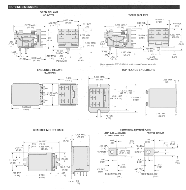 Termination: .250" quick connect/solder; and PC board. Insulating Material: Polycarbonate dust cover. Weight: 3.2 oz. (92g) approximately.