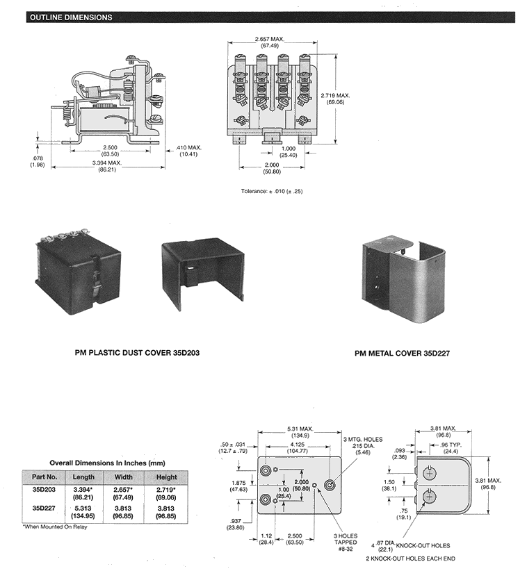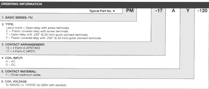 POTTER & BRUMFIELD PM SERIES HEAVY DUTY 25 AMP MULTICONTACT AC OR DC POWER RELAY File E22575 (PM & PMC) File E22575 (PMF & PMT) File LR15734 · Contact ratings to 25 amps. · 8-32 screw or .25 Q.C. termination. · AC and DC coils available. · 4PDT contact arrangement. · Plastic and metal covers available.