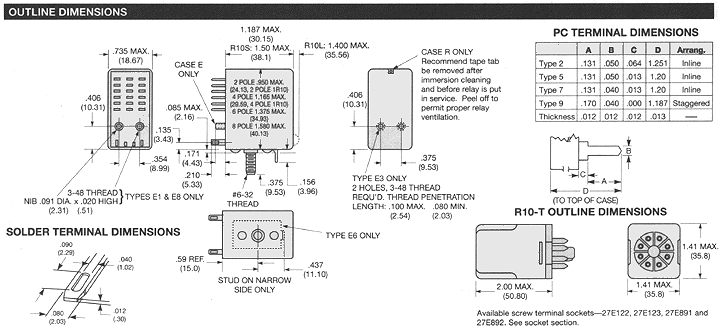 Termination: Printed circuit terminals; .250" (6.35mm) quick connects for