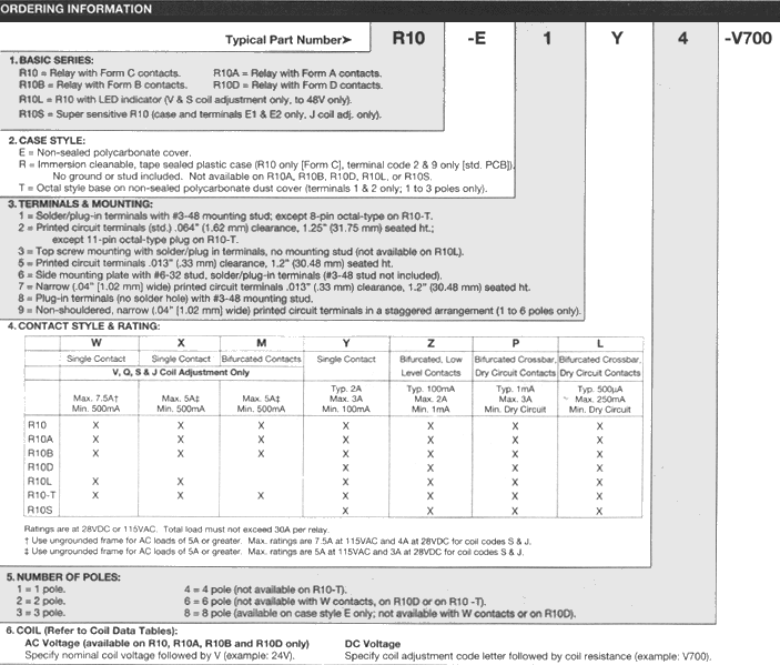 See section 4 of the ORDERING INFORMATION for contact ratings.