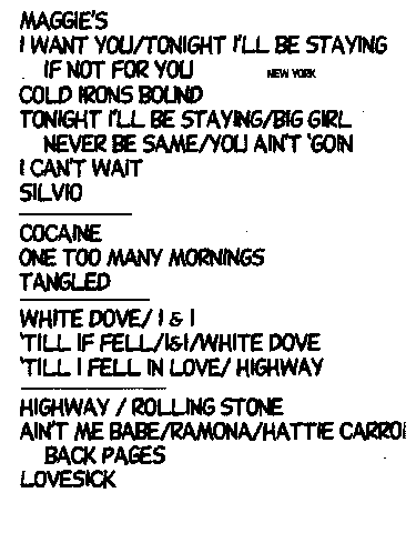 This page is updated frequently. When Dylan is on tour, it may be updated several times per day.